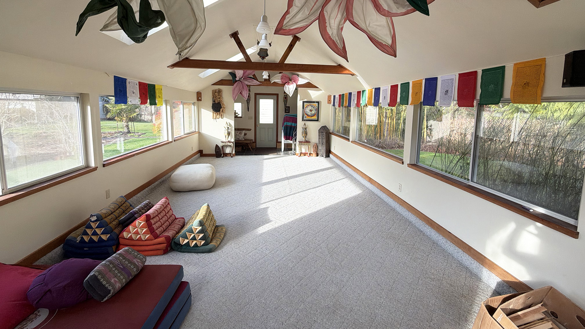 Spirit Lodge offers a meeting room for small classes, yoga and meditation. Carpeted space 13′ x 30′.